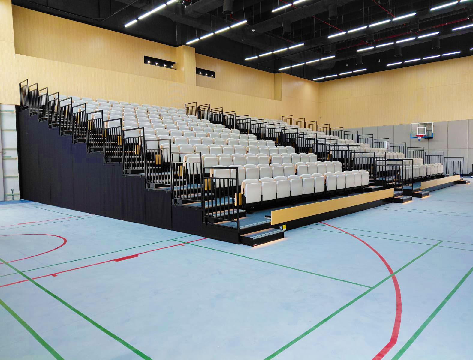 Wellington College required retractable seating for their new sports facility, courtside benches were decided to provide them with the best option for their space.